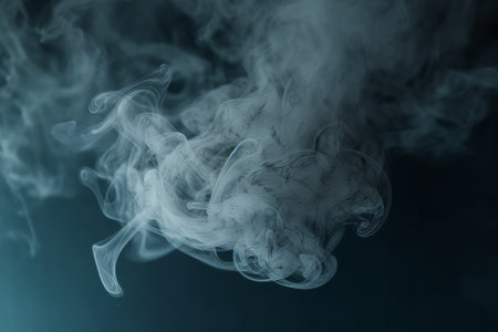 Thin wisps of bluish white smoke rising against a black backdrop, capturing a serene and mysterious ambiance.