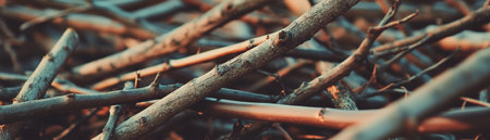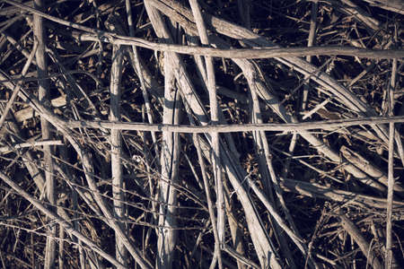 Intricate details of interconnected threads in a close-up texture of rough bark and sticks