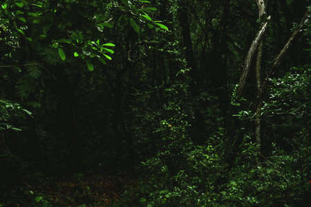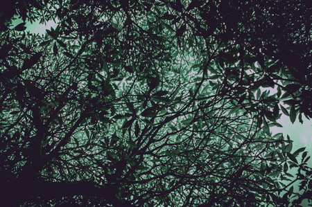 Tree in forest with low angle, full frame. Tree nature background with green color tone. Focus on tree, similar other