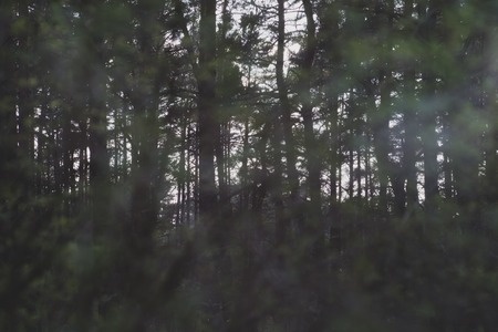 Mystical forest trees create an ethereal atmosphere through blurred motion and long exposure