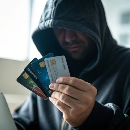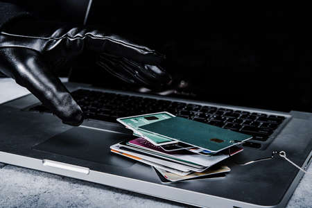 hacker hand stealing data from credit card