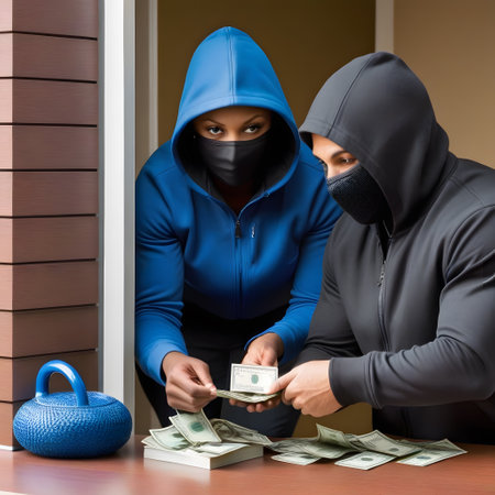 money in the hands of a bandit, a robber who counts the loot