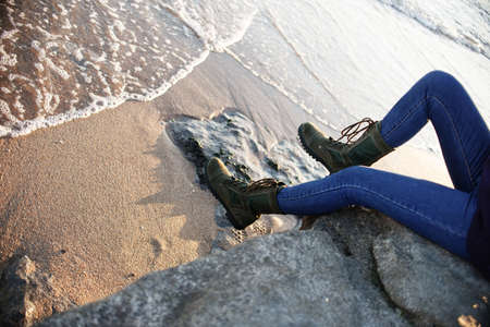Legs of woman , torn jeans, a relaxing time in holiday.