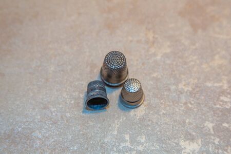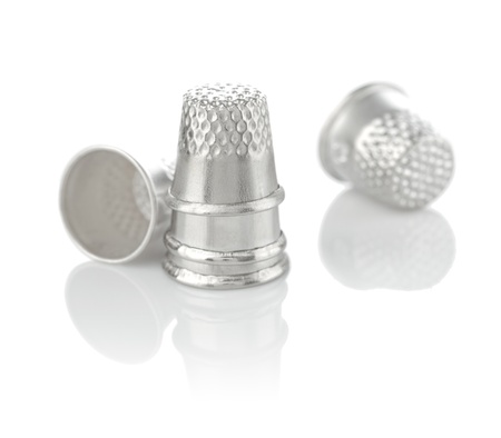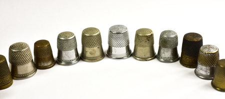 Three vintage thimbles isolated on a white background with shadow