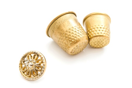 Metal thimbles on white background gold and silver
