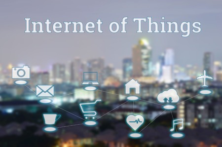 internet of things in night modern city background