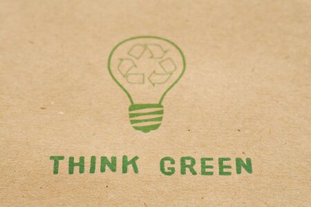 Green paper light bulb with Think Green over hands, eco energy saving concept