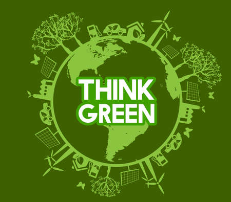 think green art. Renewable Energy elements around globe earth, Ispired in nature care. Vector illustration