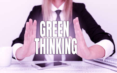 Writing displaying text Green Thinking. Business approach Taking ction to make environmental responsibility a reality Explaining Company Problem, Abstract Providing Dispute Solutions