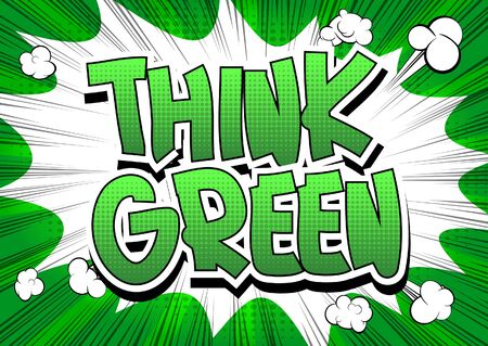 Think Green - Comic book style word on abstract background.