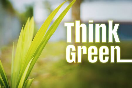 Think green logo on Fresh green grass background, natural concept background