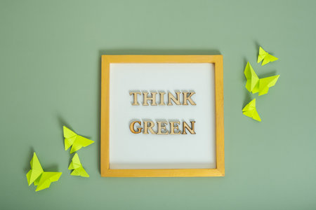 Environment for the future, concept of saving the planet. Think green text with paper butterflies.