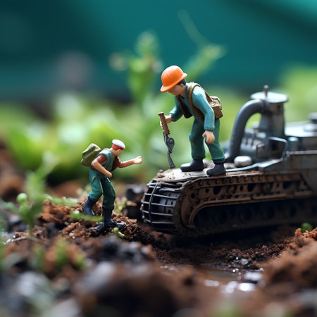 Miniature people : Worker repairing the tank. Concept of working in the garden.