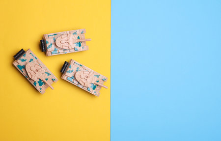 Plastic toy tanks on yellow blue background. Russian-Ukrainian war, armed conflict. Supplies of weapons to Ukraine