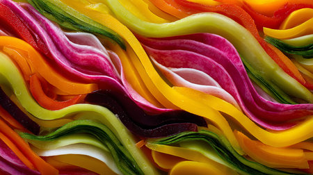 Colorful display of assorted vegetables and fruits, arranged in a rainbow pattern, highlighting freshness and health, perfect for culinary inspiration and nutrition-focused projects