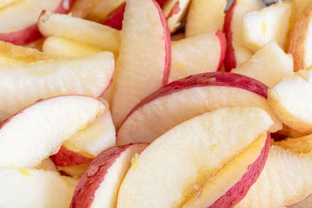 Apples cut into slices. For a background or apple pie.