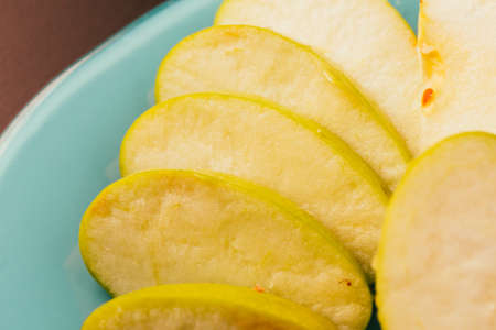 Sliced apples on a plate, close-up, selective focus.