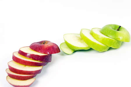 Sliced red and green apples isolated on white background