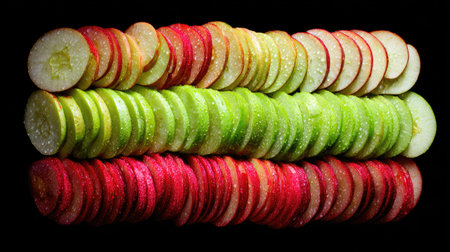 Colorful layers of a sliced apple showcasing vibrant hues of green and red in a creative arrangement for a fresh perspective