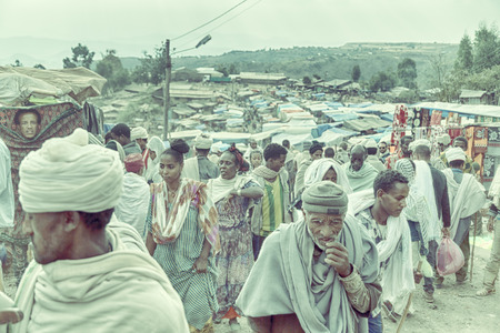 LALIBELA, ETHIOPIA - MARCH 30, 2019: People at the Saturday market in Lalibela, Ethiopia