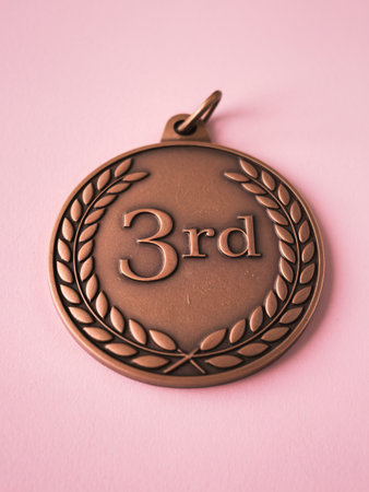 Bronze medal showcasing '3rd' in elegant relief against a soft pink background.