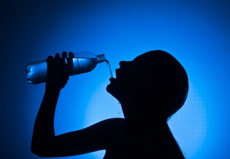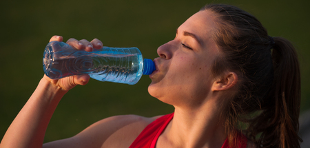 healthy girl's drinking water in the bottle , drink for thirstily for Refreshing