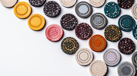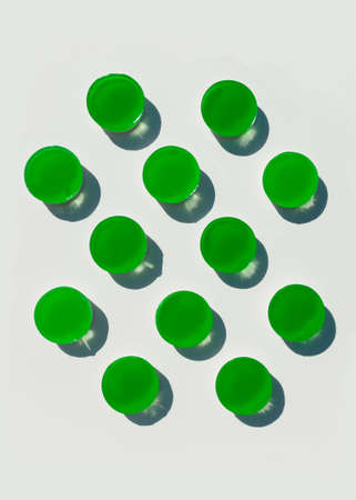 pile of plastic bottle caps in the shape of a circle with copy space on a white background recycle agenda 2030 concept