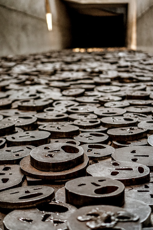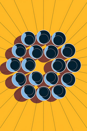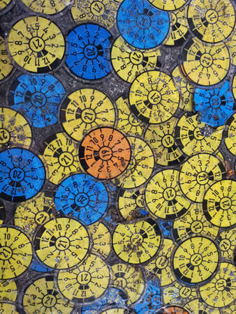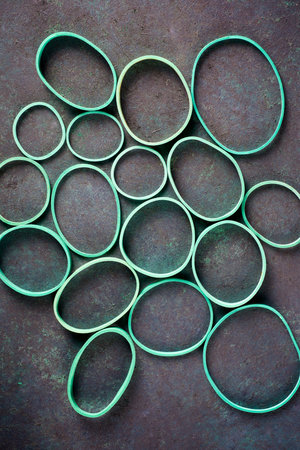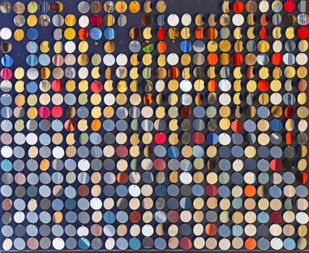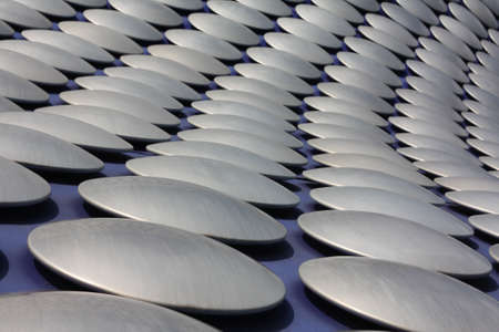 Metallic discs arranged. Circular pattern. Unity and connection idea.