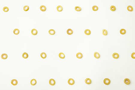 Pattern of concentric shapes made of rings and spirals on white background. Abstract geometric background with grid of concentric elements. 3D rendering illustration