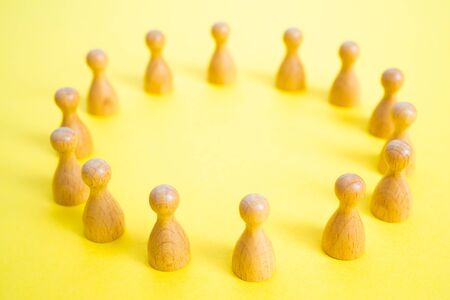 cubes ordered in a circle with many people symbols with a cube in the middle that shows agreement on concrete background - 3D rendered illustration