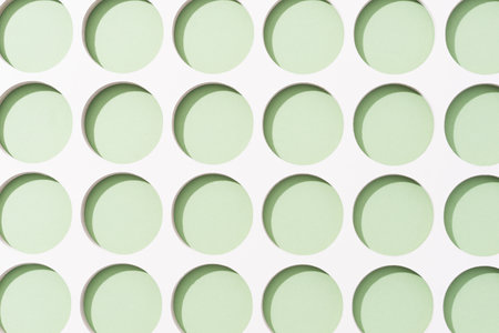 Paper art abstract geometric background - open composition, circle shape pattern in white and green colours. Minimal style creative background with copy space for text