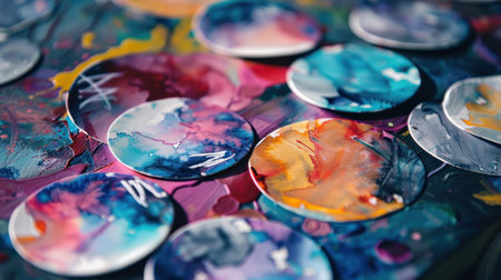 An artistic watercolor sticker mockup displayed on an artist's palette, emphasizing creativity and artistic expression for craft brands, --ar 16:9 --v 6 Job ID: f3759a57-1416-4837-acff-69a13399ed97