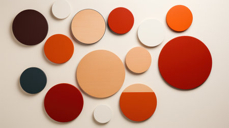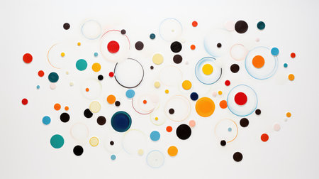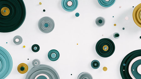 Colorful abstract circular paper cutouts on white background, creative geometric pattern