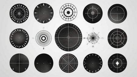 targets for various sports in silhouette vector design with a densely textured and haptic surface. the detailed graphite sketches are inspired by the bauhaus style and captured with a fisheye lens on a sony alpha a1. the texture-rich surfaces provide a tactile experience. ai generated