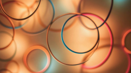 Abstract circles with vibrant colors and soft light create a captivating visual display, suitable for artistic, modern design themes and backgrounds