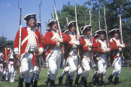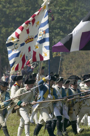 Continentals on the march in re-enactment of Attack on Redoubts 9 & 10, where the major infantry action of the siege of Yorktown took place. General Washington's armies captured two British fortifications, Endview Plantation (circa 1769), near Yorktown Vi