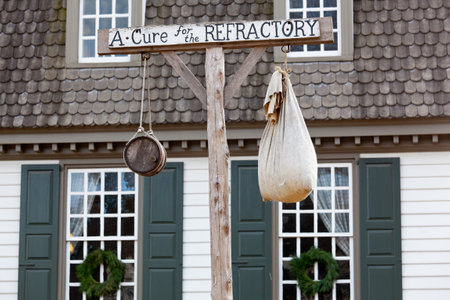 WILLIAMSBURG, VIRGINIA - DECEMBER 29: Antique sign outside tavern on December 29, 2011. Colonial Williamsburg's 301 acres includes many restored buildings and houses