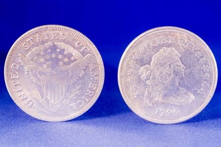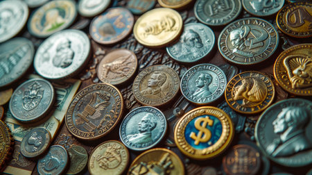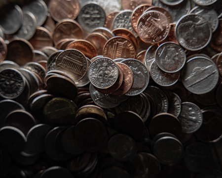Various American money, Washington quarter dollar or 25-cent silver coin. Assorted Usa Coins. Money, Financial, Business Growth concept. Finance background.