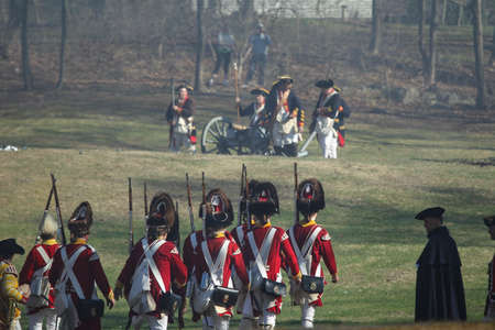 Memorial Day Celebration - Parker Revenge Battle Demonstration held in Lexington, MA on Sunday, April 20, 2014.Hundreds of British and Colonial Re-enactors engaged in a tactical weapons demonstration showing the running battle that took place along this d