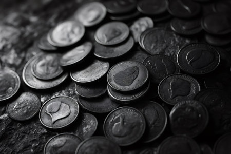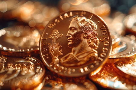 Golden Coins Scattered on a Sleek Surface with Shadows Illustration Concept of Wealth, Prosperity, Abundance, and Financial Growth. Chinese New Year. Vertical.