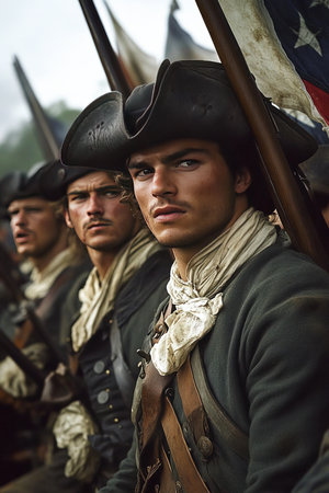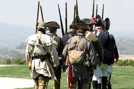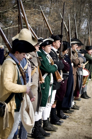 USA, Concord, MA - April 16, 2011: Minute Men are getting prepared to fight the British troops on Battle Road in Concord, MA during the celebration of Patriot Day.