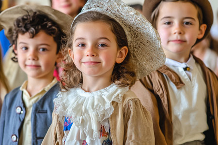 Betsy Ross actor holds colonial flag in The Betsy Ross House on East Third Street, Philadelphia, Pennsylvania