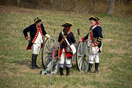 Concord, USA - April 16, 2011: British soldiers prepare to fire a cannon in Concord, MA during the Commemorating the Patriot Day