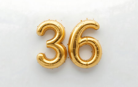 Number 36 gold 3d on white background for marketing, sales, discounts, promotions, financial, business, Anniversary, banner. 36 years anniversary golden number. gold 3d numeral isolated. 36 number 3d
