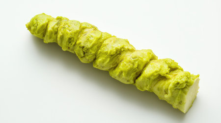 A fresh, vibrant wasabi root isolated on a white background, with the natural green color popping against the clean, simple backdrop