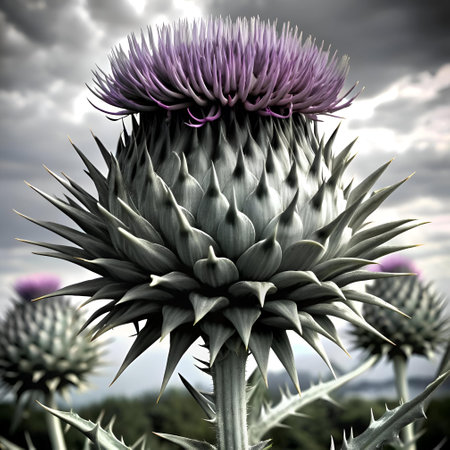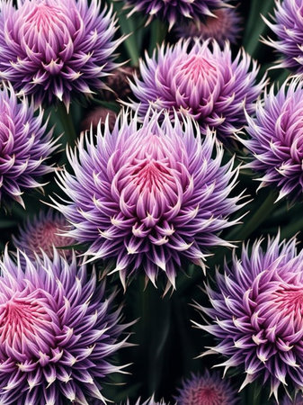 A stunning close up of a spiky artichoke flower head. showcasing its intricate details and unique texture. Perfect for adding a touch of natural beauty to your designs.