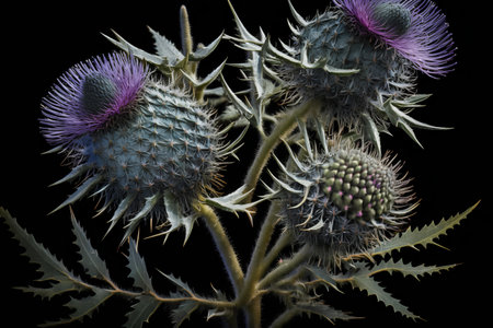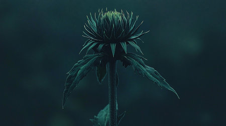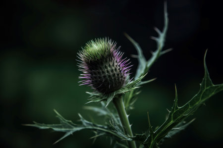 Lonely spear thistle dark photo. Outdoor nature flower plant. Generate Ai