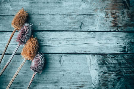 Close up of Teasel in bloom in summer, nature. thistle prickly, weed plant.