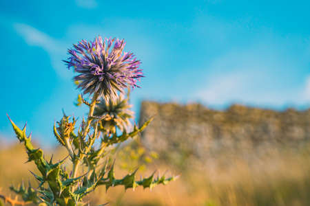 A field thistle with a purple flower near the castle de Crussol - Ardèche - France