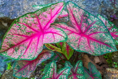 Caladium bicolor, Caladium bicolor is a perennial plant with pink and green leaves.
